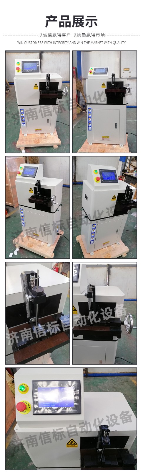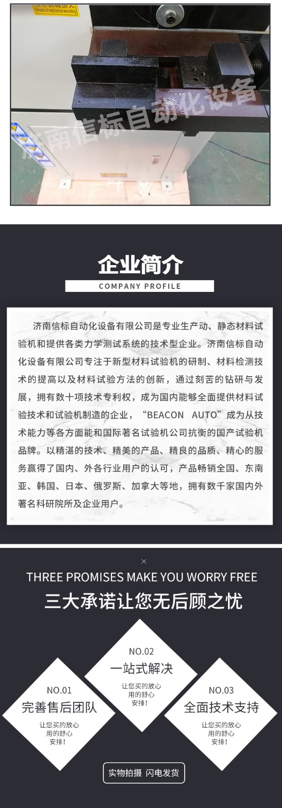 主要技術(shù)參數(shù) 1.試樣直徑:Φ0.3-Φ10mm 2.試樣長(zhǎng)度:150-250mm 3.彎曲角度:±90°(平面彎曲) 4.計(jì)數(shù)范圍:99999 5.顯示方式:液晶顯示,自動(dòng)記錄次數(shù) 6.彎曲速度:≤60rpm 7.電機(jī)功率:1.5kw 8.電 源:220V,50Hz 9.外形尺寸:740*628*1120mm 10.主機(jī)重量:約200 kg 結(jié)構(gòu)特征與工作原理 本試驗(yàn)機(jī)主要由主機(jī)和電器測(cè)控系統(tǒng)兩大部分組成,采用機(jī)械傳動(dòng),施加試驗(yàn)力矩使試樣反復(fù)彎曲,利用光電開(kāi)關(guān)來(lái)檢測(cè)彎曲試驗(yàn)次數(shù)。試樣斷裂后自動(dòng)停機(jī),擺桿復(fù)位,液晶表自動(dòng)顯示,記錄彎曲試驗(yàn)次數(shù)。 主機(jī) 主機(jī)由電機(jī),通過(guò)皮帶輪帶動(dòng)蝸桿蝸輪副減速,再由曲柄—擺桿機(jī)構(gòu),帶動(dòng)圓柱齒輪傳動(dòng),圓柱齒輪帶動(dòng)擺桿做±90°回轉(zhuǎn),從而使擺桿上的導(dǎo)套帶動(dòng)試樣做±90°的彎曲,達(dá)到試驗(yàn)的目的。在圓柱齒輪上裝有記數(shù)用的裝置,試樣每彎曲一次,光電開(kāi)關(guān)采集一次信號(hào),這樣就達(dá)到了記數(shù)的目的。 試驗(yàn)結(jié)束后,如果擺桿沒(méi)有停到中間位置,按復(fù)位鍵,則由另一只光電開(kāi)關(guān)采集信號(hào),使擺桿恢復(fù)到中間位置。 在擺桿上,裝有撥桿,而撥桿上裝有內(nèi)徑大小不同的導(dǎo)套,針對(duì)不同粗細(xì)的試樣,把撥桿調(diào)整到不同的高度,并使用不同的導(dǎo)套。將導(dǎo)套放入撥桿孔內(nèi),用扭簧將其別住,并使其與撥桿導(dǎo)通。 在擺桿的下方,裝有試樣夾持裝置。手動(dòng)旋轉(zhuǎn)絲杠,使活動(dòng)鉗口平移,將試樣夾緊。對(duì)不同直徑的試樣,更換相應(yīng)的鉗口和導(dǎo)套(鉗口和導(dǎo)套上有標(biāo)記)。