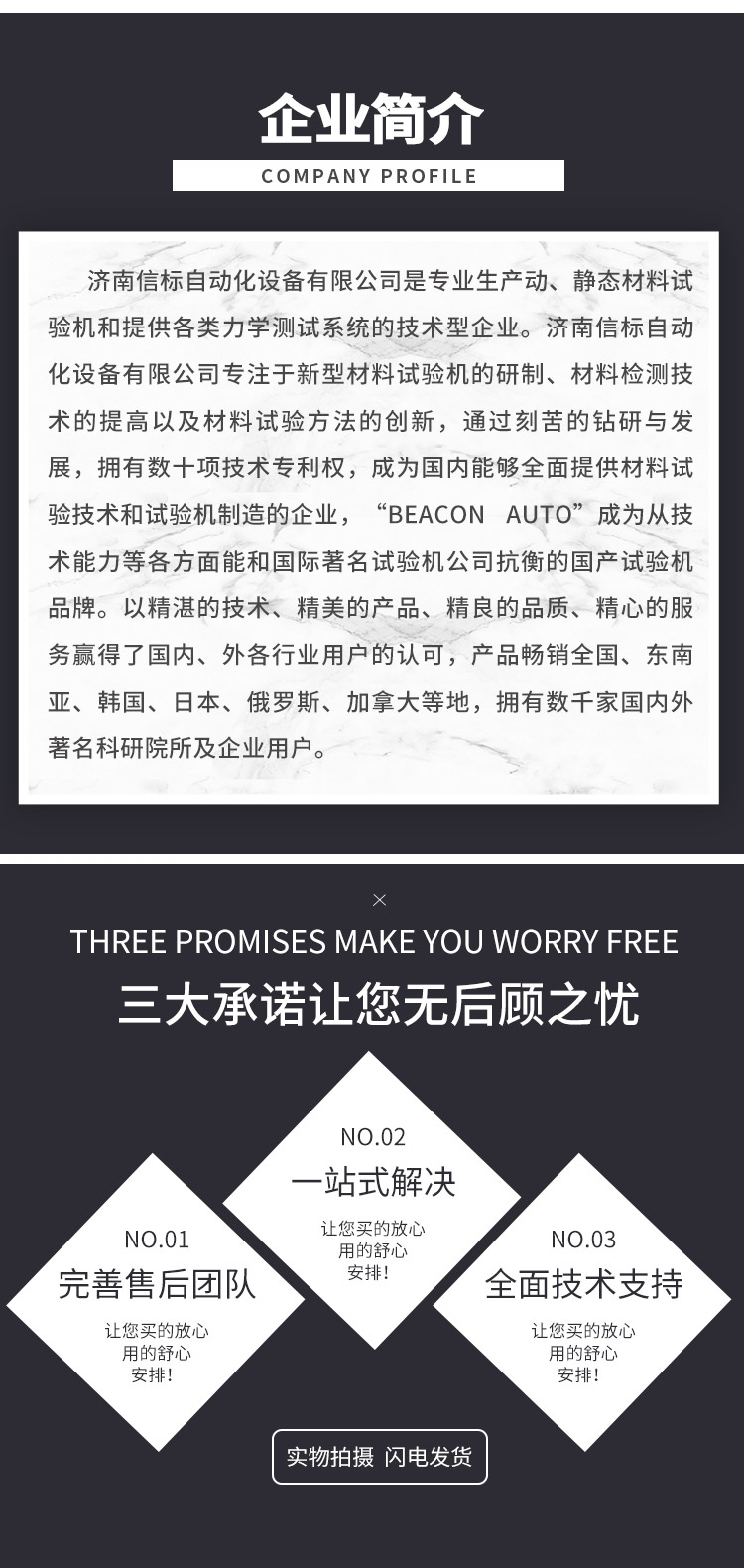 濟南信標自動化設(shè)備有限公司主要生產(chǎn):動靜態(tài)萬能疲勞試驗機,接骨板彎曲試驗機,縫合線拉伸疲勞試驗機,髖膝關(guān)節(jié)磨損試驗機,電子萬能試驗機、液壓萬能試驗機、巖石三軸、四軸,電液拉力試驗機,材料試驗機,高低溫蠕變,高低頻疲勞,拉伸、扭轉(zhuǎn)、杯突等二十多個系列兩千多個的品種。