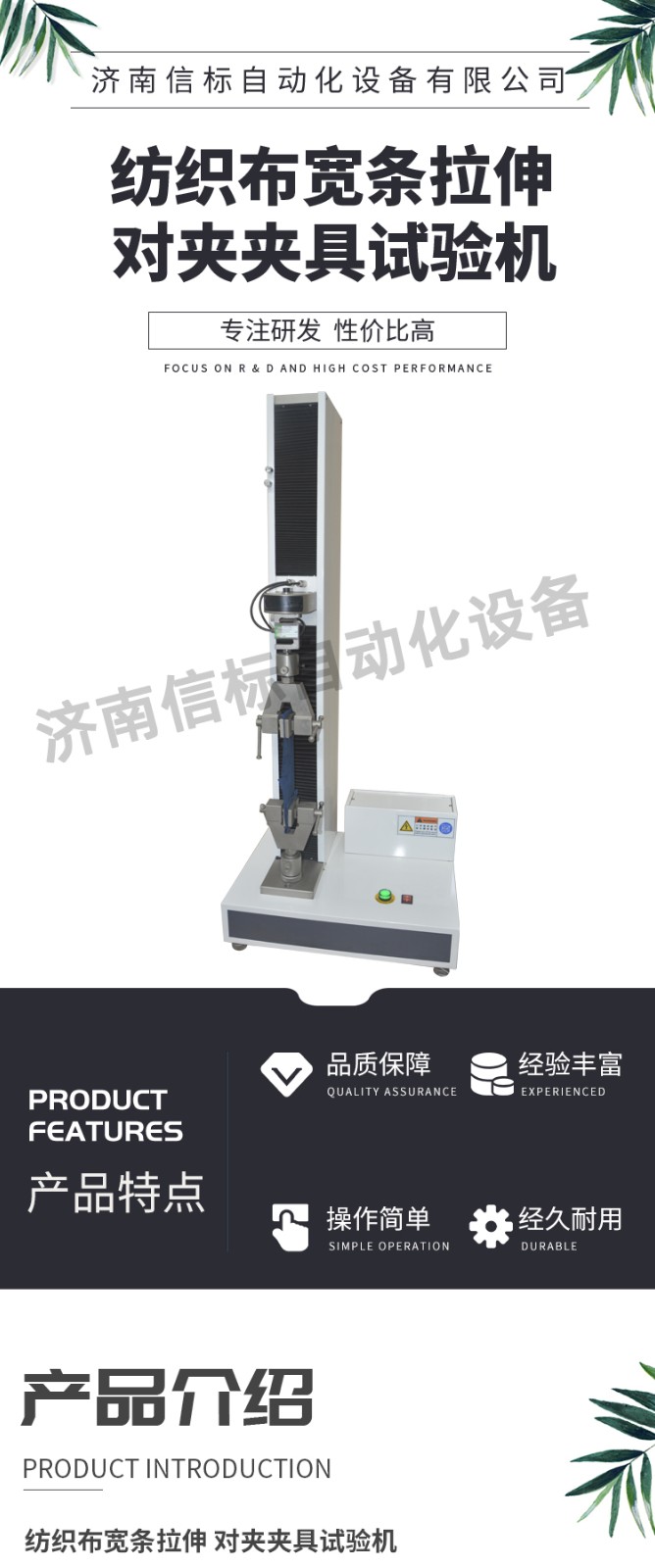 主要功能及特點: 1、主機: 1.1調(diào)速系統(tǒng)采用伺服電機和自主研發(fā)減速系統(tǒng),性能穩(wěn)定可靠,具有過流、過壓、過載等保護裝置。調(diào)速范圍可達0.05~500mm/min。 1.2傳動部分采用圓弧同步齒形帶,精密絲杠副傳動,傳動平穩(wěn),噪音低,傳動效率高。 1.3萬向節(jié)采用十字插銷結(jié)構(gòu),而且具有擺角限制功能,一方面便于試樣夾持,保證試驗同心度,另一方面很好的消除了不規(guī)則試樣對傳感器的影響。 2、控制系統(tǒng)、操作軟件及數(shù)據(jù)處理系統(tǒng) 2.1計算機控制系統(tǒng),具有集成度高、性能穩(wěn)定、調(diào)整方便等優(yōu)點??梢詫嶒灁?shù)據(jù)進行實時采集,對實驗特性曲線實現(xiàn)實時動態(tài)顯示,試驗數(shù)據(jù)文件能以Access常用數(shù)據(jù)庫或SQLserve大型數(shù)據(jù)庫的方式保存,方便實現(xiàn)客戶的資源共享及網(wǎng)絡(luò)管理,以及用戶的再分析。對于用戶自定義的各種word2000報表,該軟件可輕松實現(xiàn)訪問,解決了不同用戶或同一用戶在不同時期對試驗報表有不同需要的難題。該軟件可處理試驗力、位移、 時間、變形的原始數(shù)據(jù)及由此派生的曲線。 2.2保護功能:該機具有軟件和機械兩種限位保護方式,超過最大負荷自動停機的比例可動態(tài)設(shè)定;具有過流、過壓、過載等多種保護功能。 2.3對于負荷、變形通道可實現(xiàn)自動標示,直觀方便。 2.4批量試驗可實現(xiàn)曲線的分層次顯示,曲線自動跟隨。 2.5該軟件可實現(xiàn)用戶自定義的速度設(shè)定,速度的計算機調(diào)整。還可實現(xiàn)高精度的速度標定,隨時調(diào)整速度檔位和編碼。