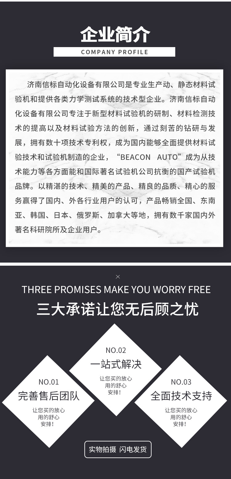 濟(jì)南信標(biāo)自動化設(shè)備有限公司主要生產(chǎn):動靜態(tài)萬能疲勞試驗(yàn)機(jī),接骨板彎曲試驗(yàn)機(jī),縫合線拉伸疲勞試驗(yàn)機(jī),髖膝關(guān)節(jié)磨損試驗(yàn)機(jī),電子萬能試驗(yàn)機(jī)、液壓萬能試驗(yàn)機(jī)、巖石三軸、四軸,電液拉力試驗(yàn)機(jī),材料試驗(yàn)機(jī),高低溫蠕變,高低頻疲勞,拉伸、扭轉(zhuǎn)、杯突等二十多個系列兩千多個的品種。