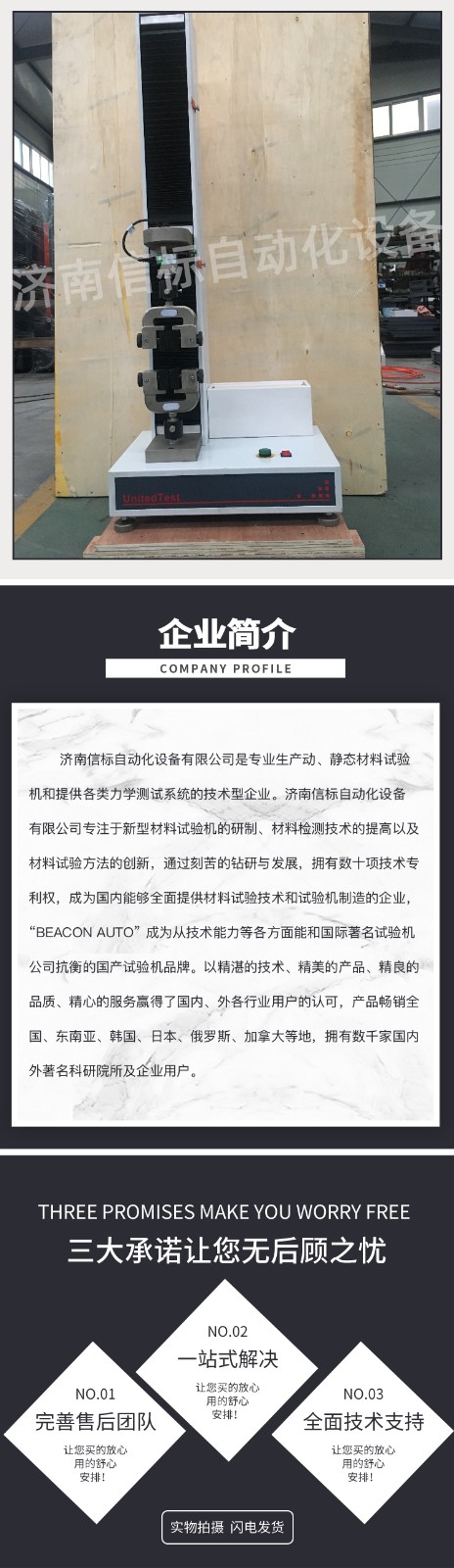 金屬材料壓縮彎曲實(shí)驗(yàn)口罩塑料拉伸強(qiáng)度試驗(yàn)機(jī)主要功能及特點(diǎn): 1、主機(jī): 1.1調(diào)速系統(tǒng)采用伺服電機(jī)和自主研發(fā)減速系統(tǒng),性能穩(wěn)定可靠,具有過流、過壓、過載等保護(hù)裝置。調(diào)速范圍可達(dá)0.05~500mm/min。 1.2傳動(dòng)部分采用圓弧同步齒形帶,精密絲杠副傳動(dòng),傳動(dòng)平穩(wěn),噪音低,傳動(dòng)效率高。 1.3萬向節(jié)采用十字插銷結(jié)構(gòu),而且具有擺角限制功能,一方面便于試樣夾持,保證試驗(yàn)同心度,另一方面很好的消除了不規(guī)則試樣對(duì)傳感器的影響。 2、控制系統(tǒng)、操作軟件及數(shù)據(jù)處理系統(tǒng) 2.1計(jì)算機(jī)控制系統(tǒng),具有集成度高、性能穩(wěn)定、調(diào)整方便等優(yōu)點(diǎn)??梢詫?duì)實(shí)驗(yàn)數(shù)據(jù)進(jìn)行實(shí)時(shí)采集,對(duì)實(shí)驗(yàn)特性曲線實(shí)現(xiàn)實(shí)時(shí)動(dòng)態(tài)顯示,試驗(yàn)數(shù)據(jù)文件能以Access常用數(shù)據(jù)庫或SQLserve大型數(shù)據(jù)庫的方式保存,方便實(shí)現(xiàn)客戶的資源共享及網(wǎng)絡(luò)管理,以及用戶的再分析。對(duì)于用戶自定義的各種word2000報(bào)表,該軟件可輕松實(shí)現(xiàn)訪問,解決了不同用戶或同一用戶在不同時(shí)期對(duì)試驗(yàn)報(bào)表有不同需要的難題。該軟件可處理試驗(yàn)力、位移、時(shí)間、變形的原始數(shù)據(jù)及由此派生的曲線。