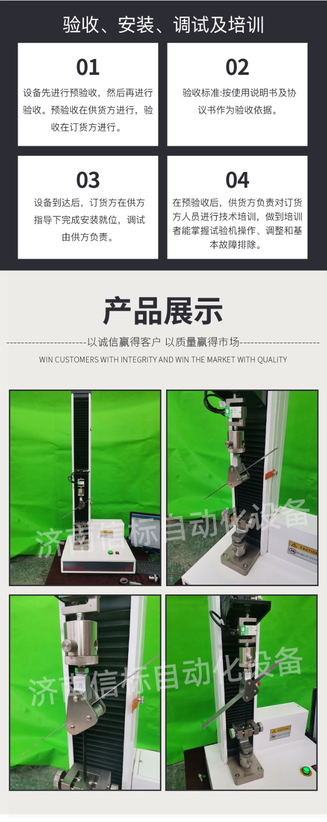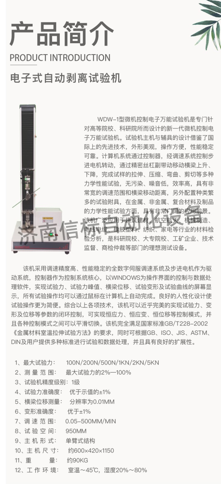 高強度膠黏劑膠帶浮棍法90度180度剝離強度試驗機主要功能及特點: 1、主機: 1.1調(diào)速系統(tǒng)采用伺服電機和自主研發(fā)減速系統(tǒng),性能穩(wěn)定可靠,具有過流、過壓、過載等保護裝置。調(diào)速范圍可達0.05~500mm/min。 1.2傳動部分采用圓弧同步齒形帶,精密絲杠副傳動,傳動平穩(wěn),噪音低,傳動效率高。 1.3萬向節(jié)采用十字插銷結(jié)構(gòu),而且具有擺角限制功能,一方面便于試樣夾持,保證試驗同心度,另一方面很好的消除了不規(guī)則試樣對傳感器的影響。 2、控制系統(tǒng)、操作軟件及數(shù)據(jù)處理系統(tǒng) 2.1計算機控制系統(tǒng),具有集成度高、性能穩(wěn)定、調(diào)整方便等優(yōu)點??梢詫嶒灁?shù)據(jù)進行實時采集,對實驗特性曲線實現(xiàn)實時動態(tài)顯示,試驗數(shù)據(jù)文件能以Access常用數(shù)據(jù)庫或SQLserve大型數(shù)據(jù)庫的方式保存,方便實現(xiàn)客戶的資源共享及網(wǎng)絡(luò)管理,以及用戶的再分析。對于用戶自定義的各種word2000報表,該軟件可輕松實現(xiàn)訪問,解決了不同用戶或同一用戶在不同時期對試驗報表有不同需要的難題。該軟件可處理試驗力、位移、時間、變形的原始數(shù)據(jù)及由此派生的曲線。