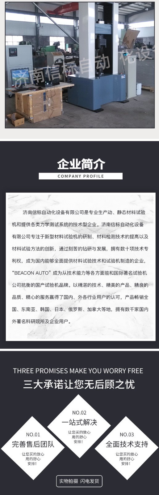 濟(jì)南信標(biāo)自動(dòng)化設(shè)備有限公司主要生產(chǎn):動(dòng)靜態(tài)萬(wàn)能疲勞試驗(yàn)機(jī),接骨板彎曲試驗(yàn)機(jī),縫合線拉伸疲勞試驗(yàn)機(jī),髖膝關(guān)節(jié)磨損試驗(yàn)機(jī),電子萬(wàn)能試驗(yàn)機(jī)、液壓萬(wàn)能試驗(yàn)機(jī)、巖石三軸、四軸,電液拉力試驗(yàn)機(jī),材料試驗(yàn)機(jī),高低溫蠕變,高低頻疲勞,拉伸、扭轉(zhuǎn)、杯突等二十多個(gè)系列兩千多個(gè)的品種。