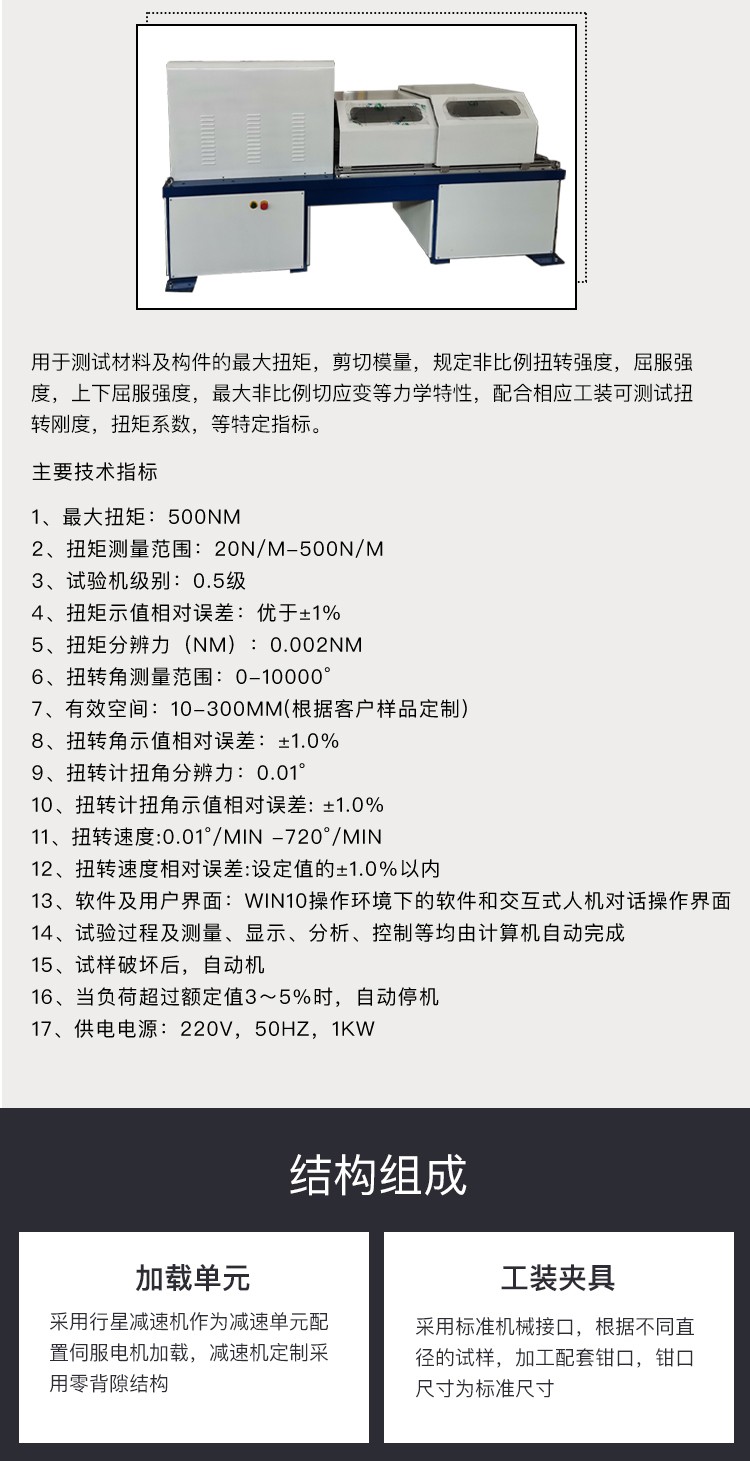 ?基于Win7/10操作平臺(tái),軟件操作簡單、功能強(qiáng)大,人機(jī)對(duì)話式結(jié)構(gòu)。操作簡單易學(xué) ?軟件采用模塊化設(shè)計(jì),不同的試驗(yàn)類型創(chuàng)建,試驗(yàn)控制以及數(shù)據(jù)分析都有獨(dú)立的模塊,與主程序分離??梢赃m應(yīng)多種試驗(yàn)類型的試驗(yàn)控制和數(shù)據(jù)處理 ?試驗(yàn)數(shù)據(jù)可由用戶自行添加,個(gè)數(shù)不限,采用模板方式新建試驗(yàn)記錄,方便快捷 ?自動(dòng)完成試驗(yàn)過程、判斷破型,自動(dòng)記錄保存試驗(yàn)數(shù)據(jù)。所有試驗(yàn)數(shù)據(jù)以國際通用的XML格式保存 ?高效的試驗(yàn)數(shù)據(jù)管理功能,能按多種方式實(shí)現(xiàn)試驗(yàn)數(shù)據(jù)的快速查詢、加載與刪除 ?試驗(yàn)結(jié)束系統(tǒng)自動(dòng)分析、統(tǒng)計(jì)試驗(yàn)結(jié)果,分析方式可由用戶自行設(shè)定 ?靈活的報(bào)表編輯功能,為用戶提供了面向圖形排版的專用報(bào)表編輯工具,簡單易學(xué),能方便的打印試驗(yàn)曲線及相關(guān)圖片、文字 ?用戶可根據(jù)需要對(duì)試驗(yàn)數(shù)據(jù)進(jìn)行刪除 ?用戶可以根據(jù)需要改變分析方法,數(shù)據(jù)可以根據(jù)本身需要自行修改修約方式 ?專用的數(shù)據(jù)庫管理庫模塊 ?分四檔數(shù)碼顯示試驗(yàn)力值,精度為每檔量程20%開始示值的±1% ?分四檔數(shù)碼顯示變形,精度為每檔量程20%開始±0.5% ?同時(shí)記錄扭矩-時(shí)間,扭角-時(shí)間、扭矩-扭角、扭矩-轉(zhuǎn)角試驗(yàn)曲線,可隨時(shí)切換觀察,任意放大縮小,水平或垂直移動(dòng),實(shí)時(shí)高速采樣 ?采用人機(jī)交互方式分析計(jì)算測試材料的機(jī)械性能指標(biāo),試驗(yàn)結(jié)束時(shí)系統(tǒng)會(huì)自動(dòng)計(jì)算最大扭矩、抗扭強(qiáng)度、上下屈服扭矩、規(guī)定非比例扭矩、切變模量等,在自動(dòng)分析的基礎(chǔ)上,還可以人工干預(yù)修正分析結(jié)果,提高分析的準(zhǔn)確性