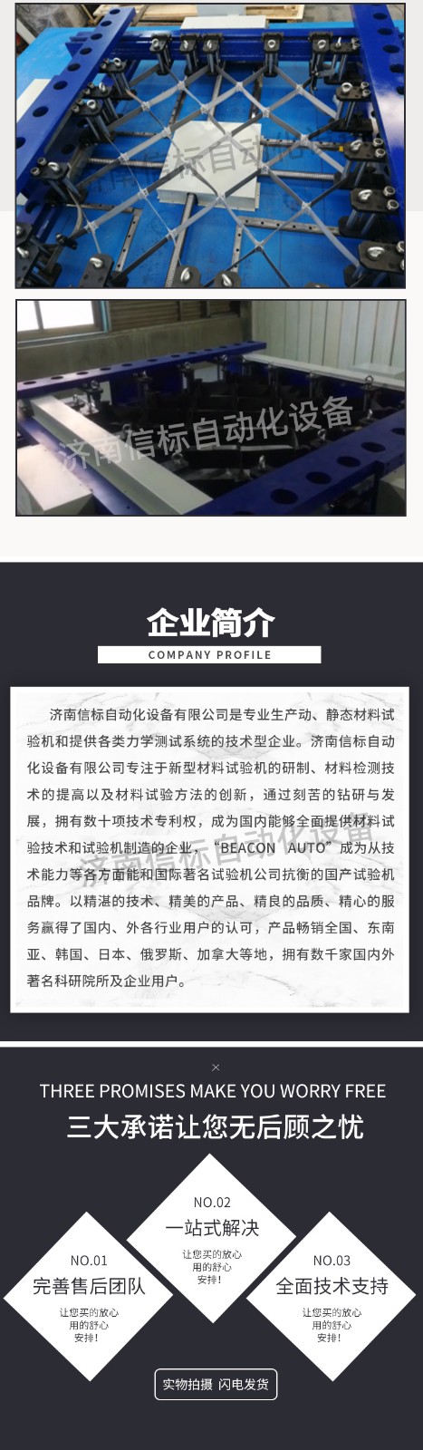 濟(jì)南信標(biāo)自動(dòng)化設(shè)備有限公司主要生產(chǎn):動(dòng)靜態(tài)萬(wàn)能疲勞試驗(yàn)機(jī),接骨板彎曲試驗(yàn)機(jī),縫合線拉伸疲勞試驗(yàn)機(jī),髖膝關(guān)節(jié)磨損試驗(yàn)機(jī),電子萬(wàn)能試驗(yàn)機(jī)、液壓萬(wàn)能試驗(yàn)機(jī)、巖石三軸、四軸,電液拉力試驗(yàn)機(jī),材料試驗(yàn)機(jī),高低溫蠕變,高低頻疲勞,拉伸、扭轉(zhuǎn)、杯突等二十多個(gè)系列兩千多個(gè)的品種。