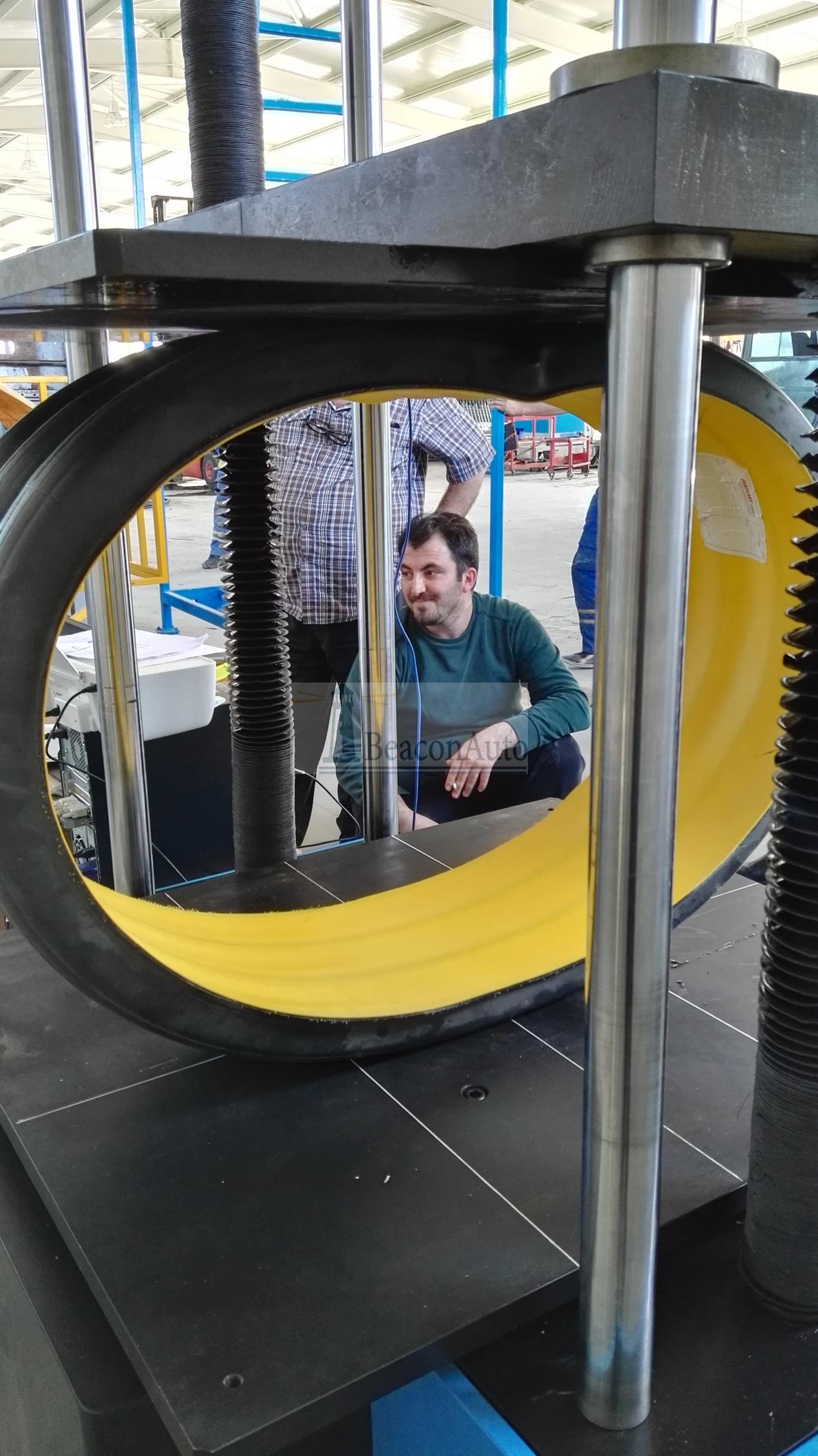 WDW-100E微機(jī)控制環(huán)剛度試驗機(jī)產(chǎn)品簡介: WDW-100E型微機(jī)控制環(huán)剛度試驗機(jī)主機(jī)與輔具的設(shè)計融匯了我公司的先進(jìn)技術(shù),外形美觀,操作方便,性能穩(wěn)定可靠。系統(tǒng)通過專用控制器,經(jīng)調(diào)速系統(tǒng)控制交流伺服電機(jī)轉(zhuǎn)動,經(jīng)減速系統(tǒng)減速后通過進(jìn)口精密滾珠絲杠副帶動橫梁上升、下降,完成試樣的拉伸、壓縮等力學(xué)性能試驗,無污染、噪音低,效率高,具有較寬的調(diào)速范圍。完全符合GB21238-2007《玻璃纖維增強(qiáng)塑料加砂管》、GB/T9647-2003《熱塑性塑料管材環(huán)剛度的測定》等標(biāo)準(zhǔn)的要求。該機(jī)廣泛應(yīng)用于鋼鐵冶金、建筑建材、航空航天、機(jī)械制造、電線電纜、橡膠塑料、紡織、家電等行業(yè)的材料檢驗分析,是科研院校、大專院校、工礦企業(yè)、技術(shù)監(jiān)督、商檢仲裁等部門的理想測試設(shè)備。 該機(jī)采用調(diào)速精度高、性能穩(wěn)定的交流伺服調(diào)速系統(tǒng)及伺服電機(jī)作為驅(qū)動系統(tǒng),專用控制器作為控制系統(tǒng)核心,以WINDOWS為操作界面的控制與數(shù)據(jù)處理軟件,實現(xiàn)試驗力、試驗力峰值、橫梁位移、試驗變形及試驗曲線的屏幕顯示,所有試驗操作均可以通過鼠標(biāo)在計算機(jī)上自動完成。良好的人性化設(shè)計使試驗操作更為簡便。綜合以上各項技術(shù),該機(jī)可以近乎完美的實現(xiàn)試驗力、變形及位移等參數(shù)的閉環(huán)控制,可實現(xiàn)恒應(yīng)力、恒應(yīng)變、恒位移等控制模式,并且各種控制模式之間可以平滑切換。 WDW-100E微機(jī)控制環(huán)剛度試驗機(jī)主要技術(shù)指標(biāo): 1. 最大試驗力: 100kN 2. 有效測量范圍: 0.4%—100%FS(200N-50kN) 3. 試驗力準(zhǔn)確度: 優(yōu)于示值的±1% 4. 橫梁位移測量: 分辨率為0.0025mm 5. 內(nèi)變形準(zhǔn)確度: 優(yōu)于±1% 6. 調(diào) 速 范 圍: 0.01-300mm/min 7. 壓縮試驗空間: 2800mm 8. 壓 盤 尺 寸: 800×1000mm 9. 主 機(jī) 形 式: 落地式結(jié)構(gòu) 10. 重 量: 約2550Kg 11. 工 作 環(huán) 境: 室溫~45℃,濕度20%~80% 12. 設(shè)備外形:1500*1200*3500 13. 工作電壓:220V 2KW WDW-100E微機(jī)控制環(huán)剛度試驗機(jī)主要功能及特點(diǎn): 1. 主機(jī): 1.1該機(jī)采用門式結(jié)構(gòu):下壓; 1.2調(diào)速系統(tǒng)采用交流伺服電機(jī)和調(diào)速器,性能穩(wěn)定可靠,具有過流、過壓、過載等保護(hù)裝置。調(diào)速范圍可達(dá)0.01~300mm/min。 1.3傳動部分采用圓弧同步齒形帶,精密絲杠副傳動,傳動平穩(wěn),噪音低,傳動效率高。(均為重型結(jié)構(gòu)) 2、控制系統(tǒng)、操作軟件及數(shù)據(jù)處理系統(tǒng) 2.1計算機(jī)控制系統(tǒng),具有集成度高、性能穩(wěn)定、調(diào)整方便等優(yōu)點(diǎn)。可以對實驗數(shù)據(jù)進(jìn)行實時采集,對實驗特性曲線實現(xiàn)實時動態(tài)顯示,試驗數(shù)據(jù)文件能以Access常用數(shù)據(jù)庫的方式保存,方便實現(xiàn)客戶的資源共享及網(wǎng)絡(luò)管理,以及用戶的再分析。對于用戶自定義的各種word2000報表,該軟件可輕松實現(xiàn)訪問,解決了不同用戶或同一用戶在不同時期對試驗報表有不同需要的難題。該軟件可處理試驗力、位移、時間、變形的原始數(shù)據(jù)及由此派生的曲線。 2.2保護(hù)功能:該機(jī)具有軟件和機(jī)械兩種限位保護(hù)方式,超過最大負(fù)荷自動停機(jī)的比例可動態(tài)設(shè)定;具有過流、過壓、過載等多種保護(hù)功能。 2.3對于負(fù)荷、變形通道可實現(xiàn)自動標(biāo)示,直觀方便。 2.4批量試驗可實現(xiàn)曲線的分層次顯示,曲線自動跟隨。 2.5該軟件可實現(xiàn)用戶自定義的速度設(shè)定,速度的計算機(jī)調(diào)整。還可實現(xiàn)高精度的速度標(biāo)定,隨時調(diào)整速度檔位和編碼。 2.6監(jiān)測試驗過程:對試驗過程中的試驗力、變形、位移、曲線等多種參數(shù)可實現(xiàn)實時顯示。 2.7軟件權(quán)限分級管理功能:為了提高軟件及數(shù)據(jù)的安全性,該軟件可以通過設(shè)置不同的密碼保護(hù)來實現(xiàn)分權(quán)限管理功能。 2.8結(jié)果再現(xiàn)功能:試驗操作完成并存盤后,可根據(jù)用戶需要在以后任意時間打開并對試驗數(shù)據(jù)進(jìn)行再分析。 2.9可根據(jù)用戶需要選擇負(fù)荷~變形、負(fù)荷~時間、負(fù)荷~位移、位移~時間、變形~時間等曲線來進(jìn)行試驗及數(shù)據(jù)顯示、存儲、分析及打印。 2.10曲線逐點(diǎn)遍歷功能:可通過鼠標(biāo)在曲線上點(diǎn)擊力與變形值,以求得每一點(diǎn)的各種參量。 2.11結(jié)果對比功能:可以同時觀察多個試驗曲線,并可通過多個曲線的疊加、局部放大來實現(xiàn)待分析樣品特性的比對。 2.13數(shù)據(jù)采樣頻率:可根據(jù)用戶試驗要求選擇高速采樣頻率。 WDW-100E微機(jī)控制環(huán)剛度試驗機(jī)系統(tǒng)基本配置 1、試驗機(jī)主機(jī) 1套 1.1交流伺服電機(jī) (上海匯成) 1套 1.2調(diào)速系統(tǒng)(上海匯成) 1套 1.3負(fù)荷傳感器 3只 1.4精密滾珠絲杠副 2套 1.5減速系統(tǒng) 1套 2、全數(shù)字控制系統(tǒng) 1套 3、內(nèi)變形測量裝置 1套 4、聯(lián)想/hp品牌計算機(jī) 1臺 5、惠普彩色A4噴墨打印機(jī) 1臺 6、基于Windows操作系統(tǒng)