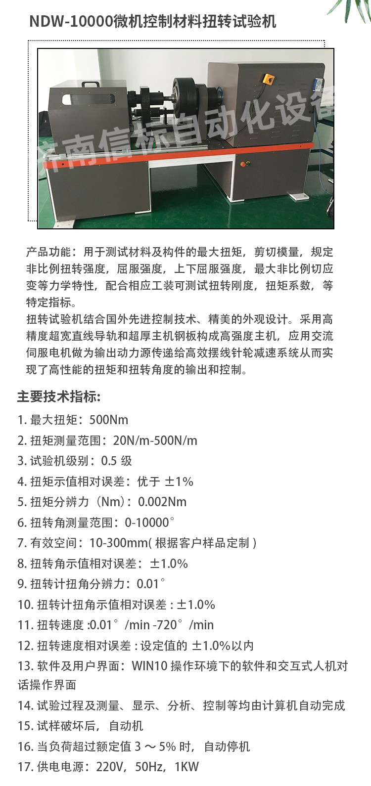 滿足及參考標(biāo)準(zhǔn): 1. GB/T2611-2007《試驗(yàn)機(jī)通用技術(shù)要求》 2. GB/T10128-1998/2007 《金屬室溫扭轉(zhuǎn)試驗(yàn)方法》 3. ISO7800-2003金屬材料單軸扭轉(zhuǎn)試驗(yàn)方法 4. ASTM A 938-2004金屬線扭轉(zhuǎn)試驗(yàn)方法 5. ASTM A938-07 鋼絲扭轉(zhuǎn)試驗(yàn)的試驗(yàn)方法 用于測試材料及構(gòu)件的最大扭矩,剪切模量,規(guī)定非比例扭轉(zhuǎn)強(qiáng)度,屈服強(qiáng)度,上下屈服強(qiáng)度,最大非比例切應(yīng)變等力學(xué)特性,配合相應(yīng)工裝可測試扭轉(zhuǎn)剛度,扭矩系數(shù),等特定指標(biāo)。 構(gòu)成高強(qiáng)度主機(jī),應(yīng)用交流伺服電機(jī)做為輸出動力源傳遞給高效擺線針輪減速系統(tǒng)從而實(shí)現(xiàn)了高性能的扭矩和扭轉(zhuǎn)角度的輸出和控制。 控制系統(tǒng)采用世界流行的高速PCIE標(biāo)準(zhǔn)并行總線設(shè)計(jì),采用美國BB公司放大器,AD公司的高速模數(shù)轉(zhuǎn)換器及CPLD構(gòu)成數(shù)據(jù)采集系統(tǒng)及高精度扭矩傳感器構(gòu)成測量控制系統(tǒng)??刂破骺蓴U(kuò)展支持,LAN USB CAN等通訊方式。 試驗(yàn)機(jī)專業(yè)軟件可實(shí)現(xiàn)自動求取最大扭矩、抗扭強(qiáng)度、上下屈服扭矩、規(guī)定非比例扭矩、切變模量等數(shù)據(jù)和指標(biāo),計(jì)算機(jī)控制系統(tǒng)對試驗(yàn)過程的控制和數(shù)據(jù)處理符合相應(yīng)國際標(biāo)準(zhǔn)的要求,多種數(shù)據(jù)輸出方式,標(biāo)準(zhǔn)報(bào)表,Excel,word,開放式數(shù)據(jù)庫MDB及原始數(shù)據(jù)源txt形式本機(jī)無污染、噪音低,效率高,具有較寬的調(diào)速范圍。本機(jī)適用于各種金屬、非金屬及復(fù)合材料的力學(xué)性能指標(biāo)的測試,完全符合國家相關(guān)標(biāo)準(zhǔn)的要求。 結(jié)構(gòu)組成 加載單元:采用行星減速機(jī)作為減速單元配置伺服電機(jī)加載,減速機(jī)定制采用零背隙結(jié)構(gòu),此結(jié)構(gòu)可保證在扭轉(zhuǎn)過程中,無系統(tǒng)間隙,除滿足常規(guī)靜態(tài)測試外還可進(jìn)行低周疲勞,過零時(shí)(扭矩從正向最大減小到零在反向加載到最大的中間過程為過零,)可保證曲線的完整性和數(shù)據(jù)的準(zhǔn)確。